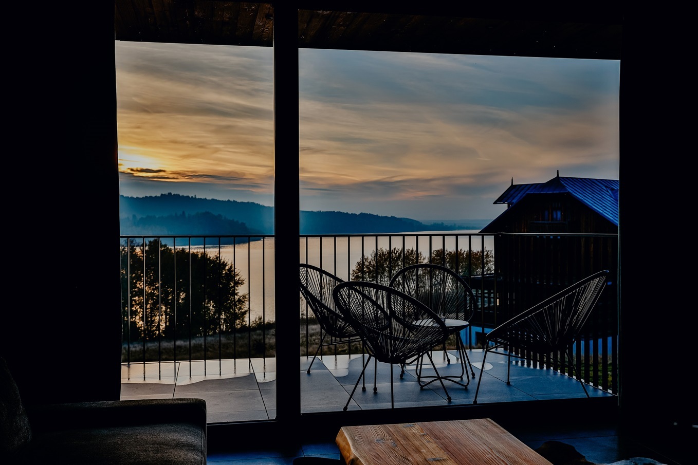 Stylowe, dopracowane w najdrobniejszym szczególe, przestronne, luksusowe apartamenty z kompleksowym wyposażeniem i panoramicznym widokiem na jezioro, góry i otaczającą przyrodę.